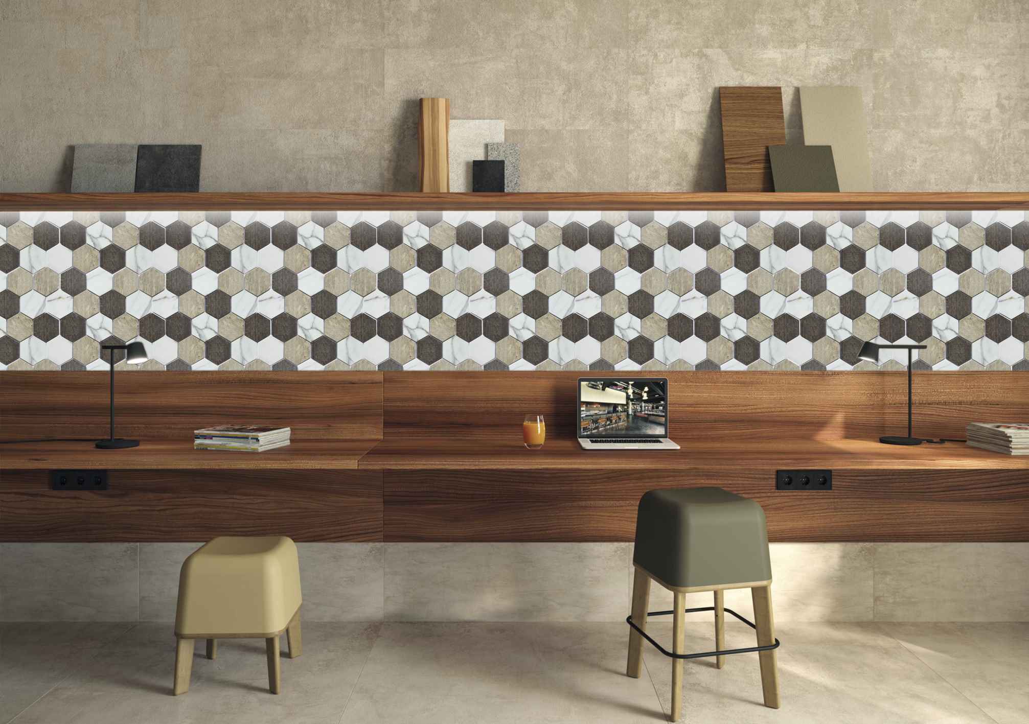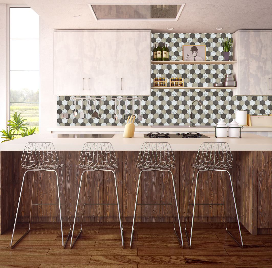 Transforme su espacio en un tributo al diseño retro con nuestra opción en diseño mate hexagonal, como una desviación moderna y ampliada del mosaico hexagonal clásico, esta opción de mosaico es un retroceso al diseño retro tradicional con un toque contemporáneo.