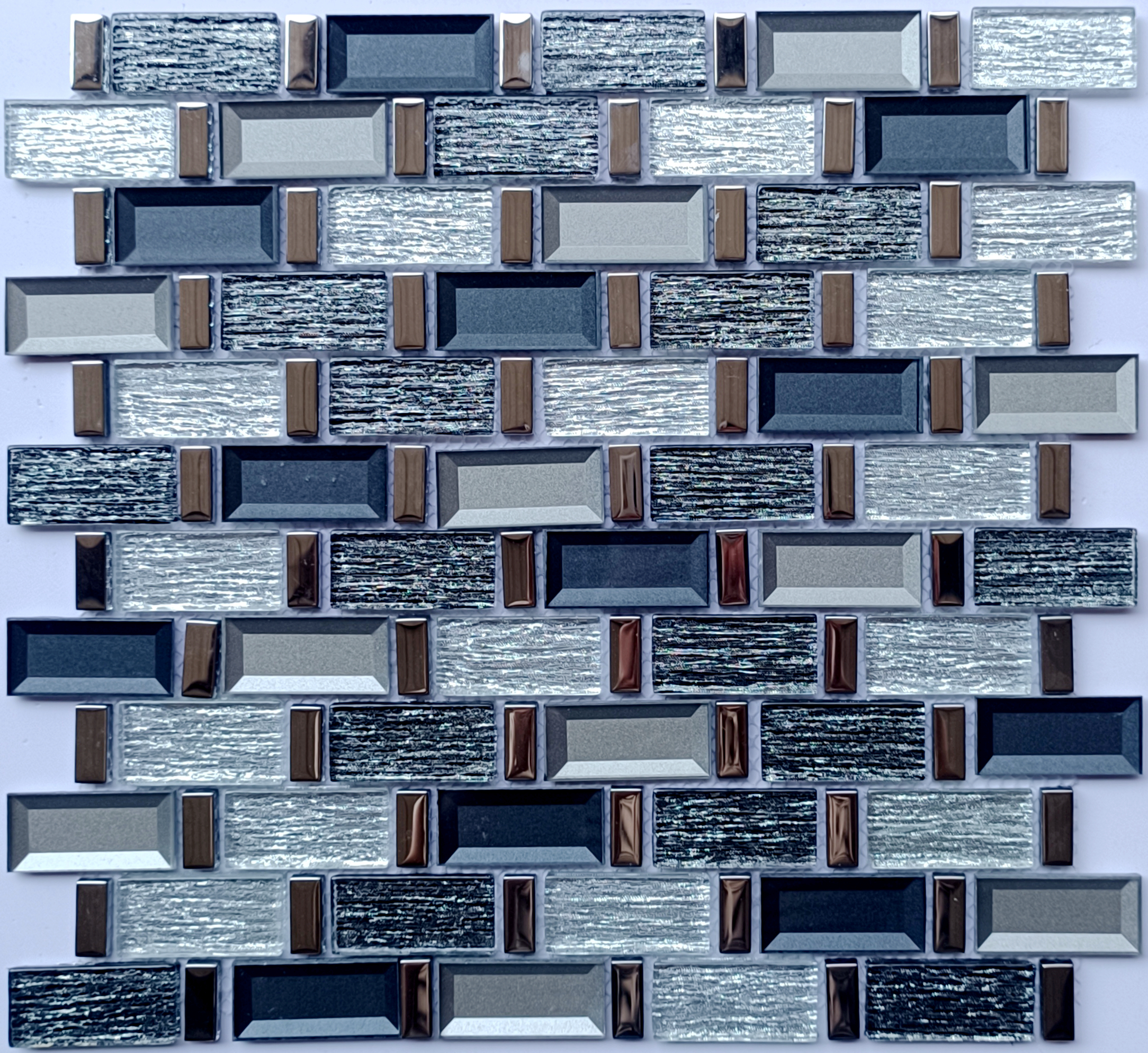 Renueva el aspecto de tu hogar con este mosaico de vidrio. Presenta tonos grises y detalles metálicos que reflejan la luz, perfectos para duchas, paredes decorativas y protectores contra salpicaduras. Esta loseta larga y lineal se puede instalar dentro de espacios residenciales o comerciales.